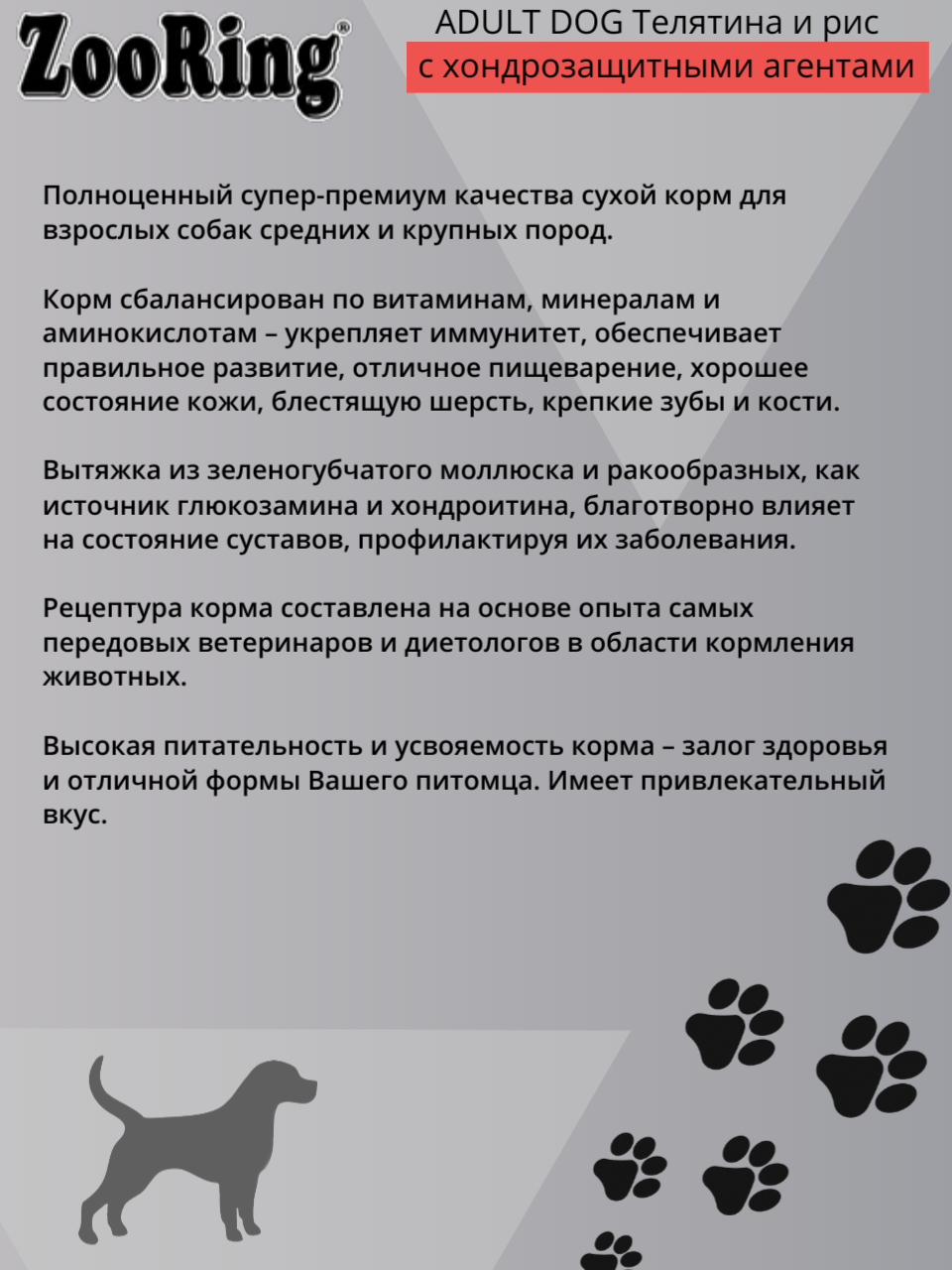 Отзывы на Сухой корм для собак ZooRing Телятина и рис с хондрозащитными агентами, для средних и крупных пород 1уп. х2 кг.