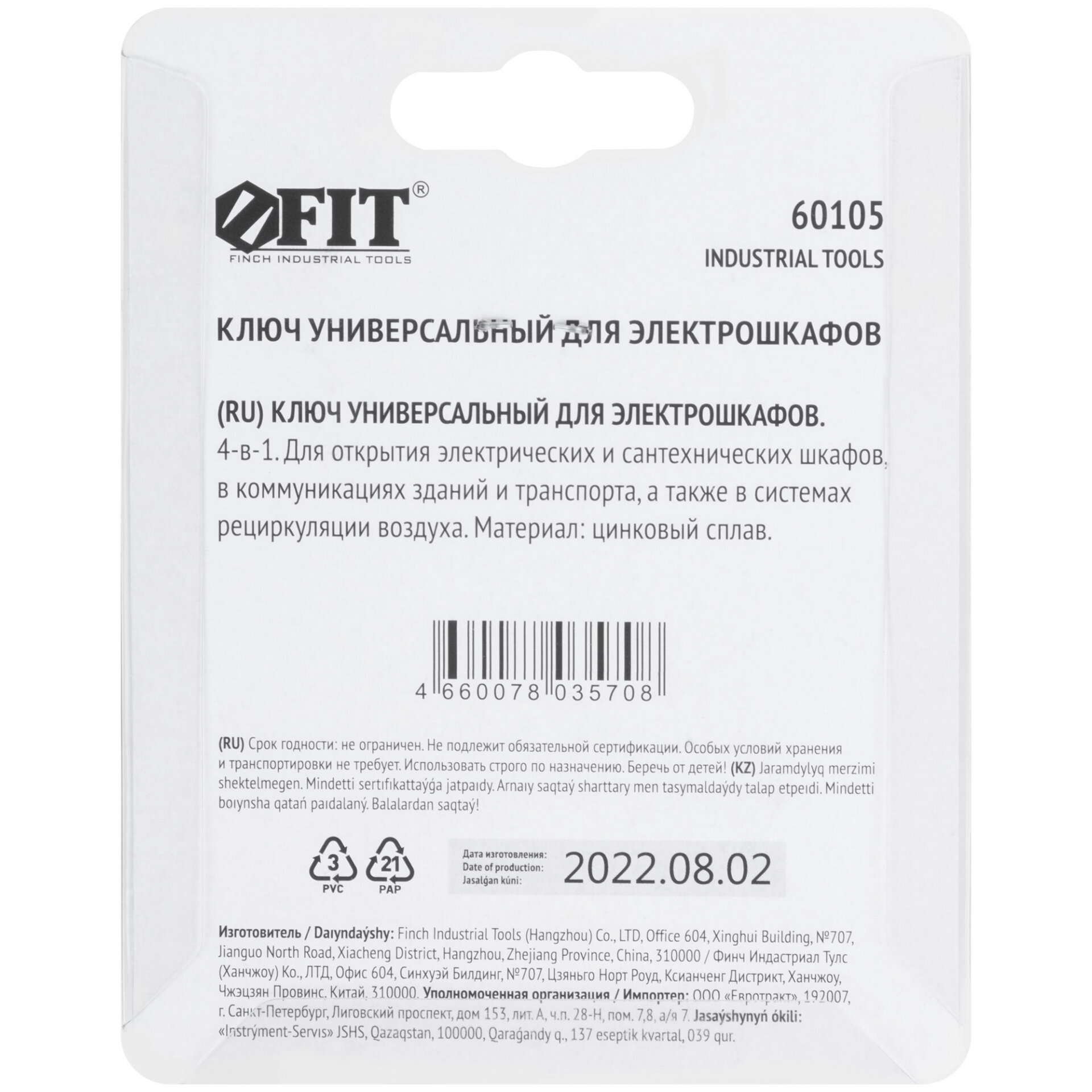 Ключ универсальный для электрошкафов 4-в-1, FIT 60105 (1 шт.) информация:
