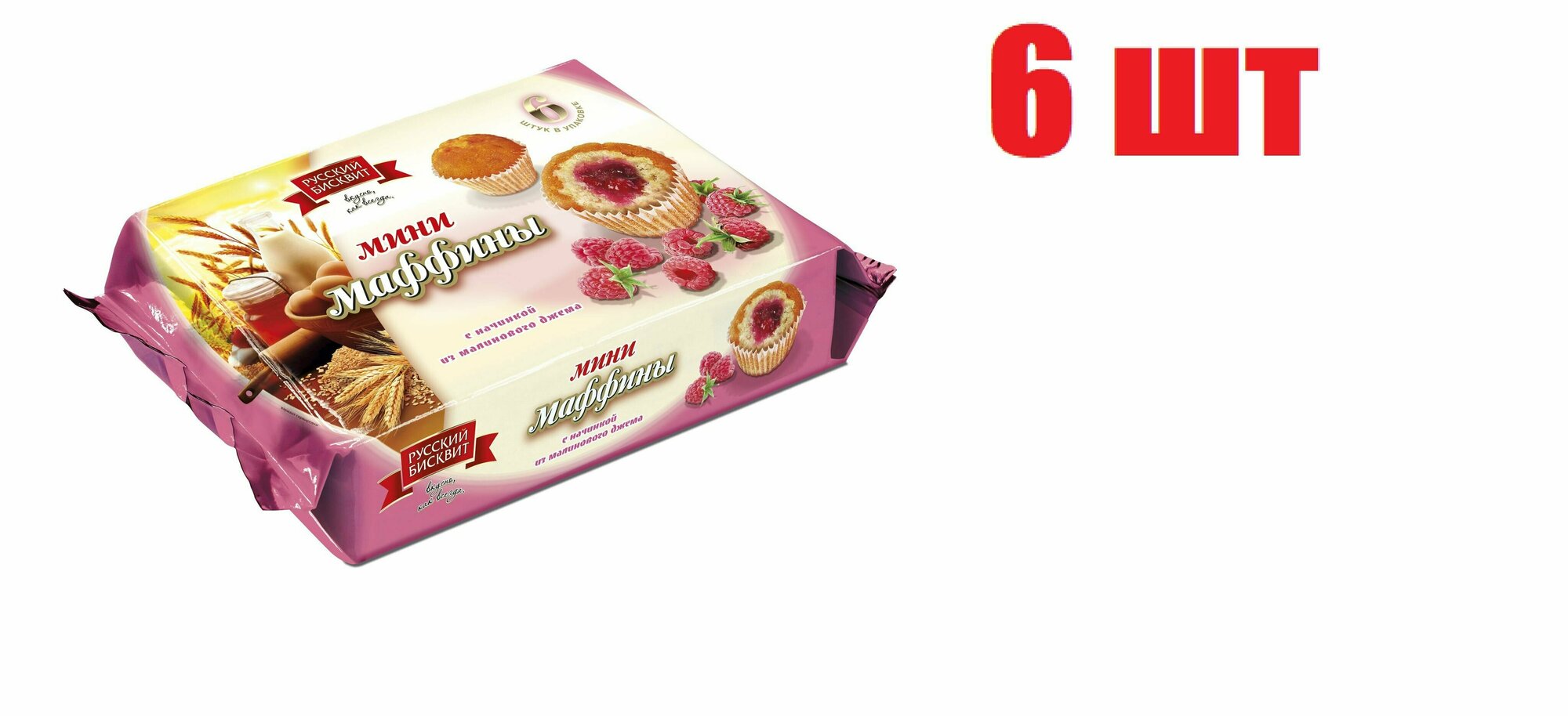 10 цен на Мини-маффины с малиновым джемом "Русский бисквит" 200 г 6 шт