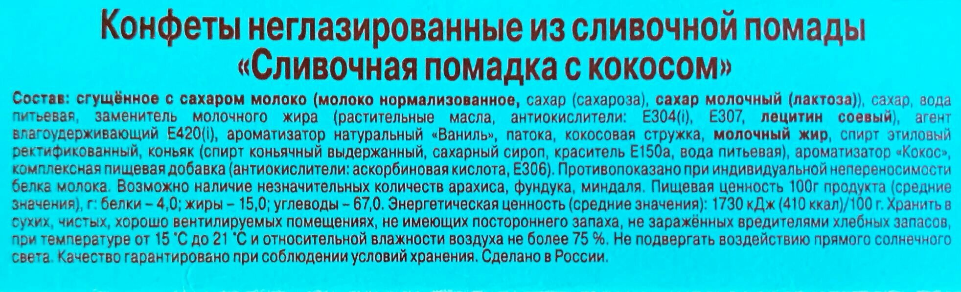 Сливочная помадка с кокосом, 220г информация:
