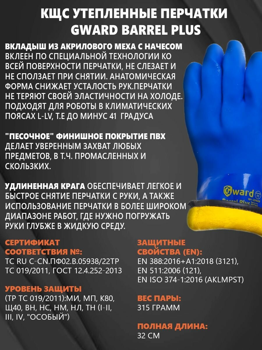 Отзывы на Перчатки рабочие утепленные с обливкой ПВХ, удлиненная крага GWARD Barrel Plus размер 11 (XXL), синий цвет, 1 пара