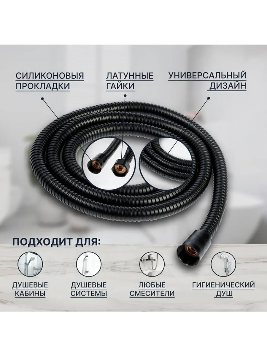 Душевой шланг ZEIN Z3644, 150 см, латунные гайки 1/2", черны информация: