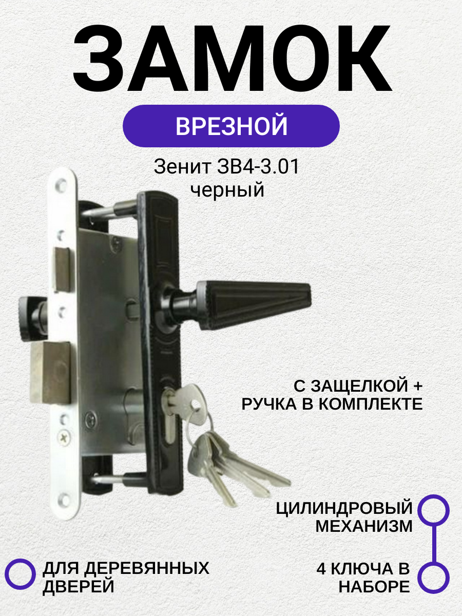 Замок врезной Зенит ЗВ4-3.01 черный информация: