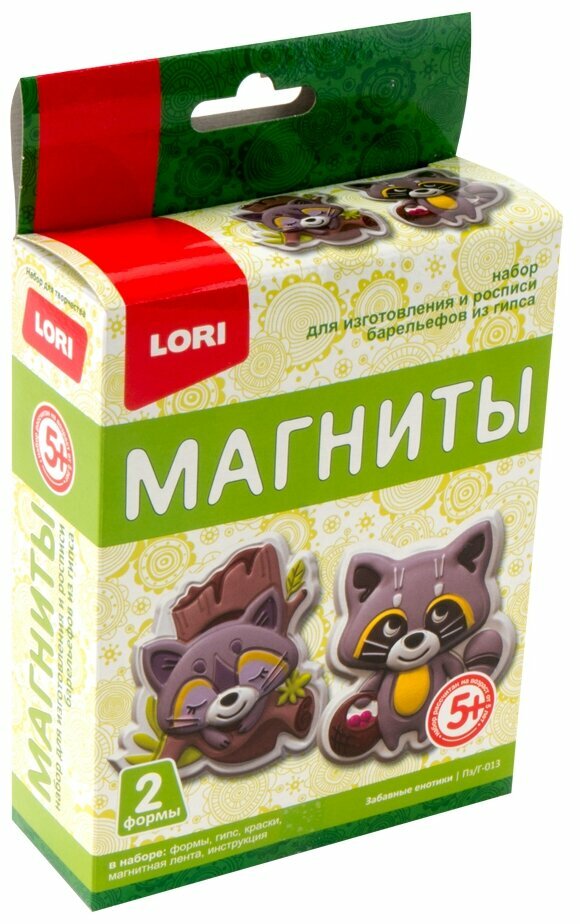 Lori / Детский набор для творчества / Развивающий набор для детей / Магниты из гипса "Забавные енотики", 5+