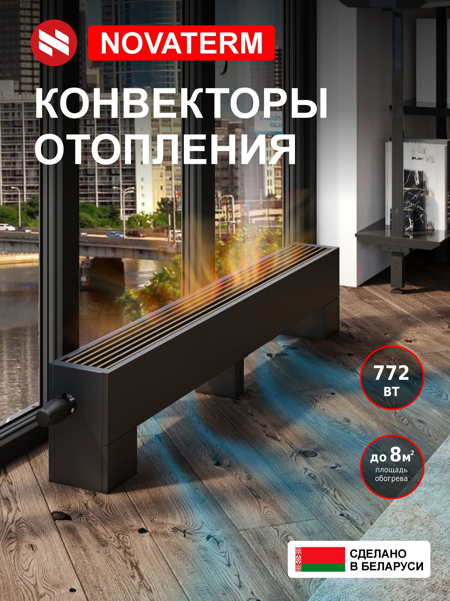 Отзывы на Конвектор напольный Новатерм 148х250х800, водяной, серый, 772Вт, радиатор отопления