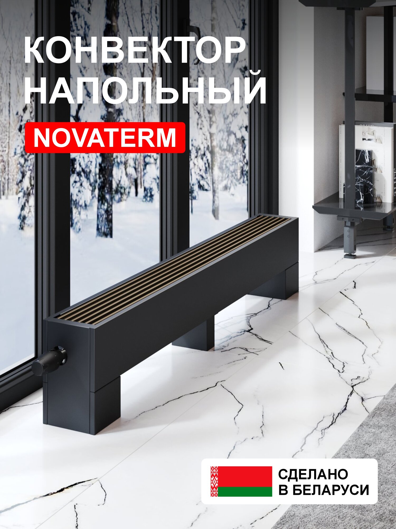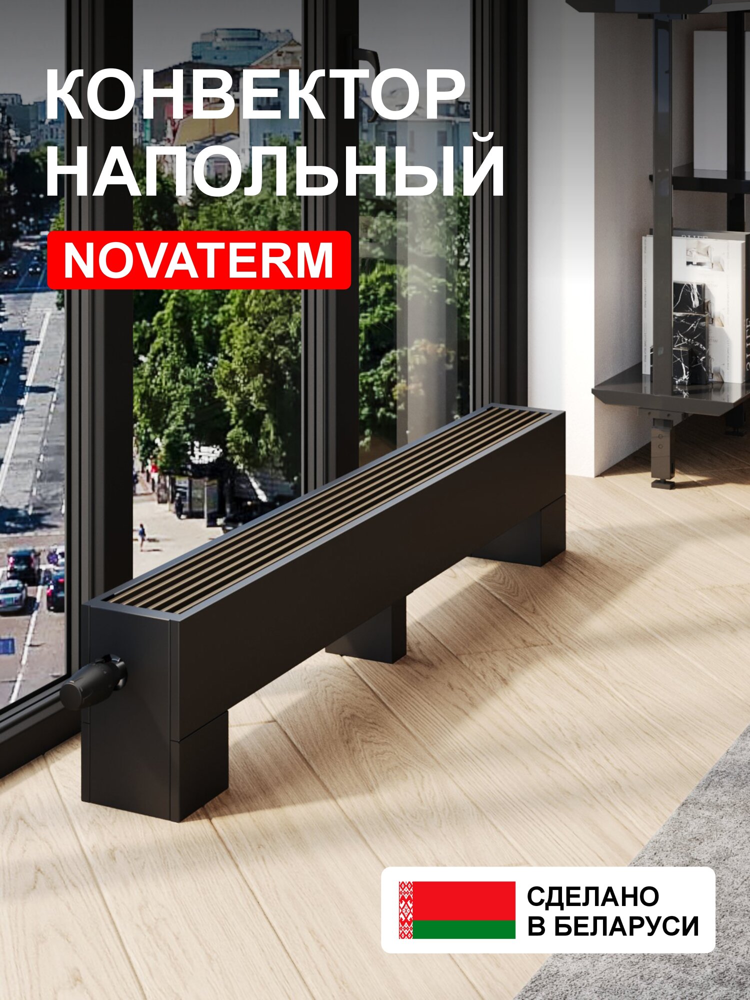 Конвектор напольный Новатерм 148х250х800, водяной, черный, 772Вт, радиатор отопления 17 620 ₽