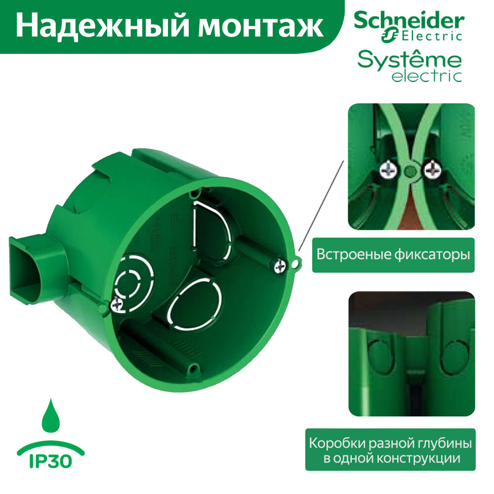 Установочная коробка для сплошных стен 65x45мм IP30, Schneider Electric (комплект 3шт)