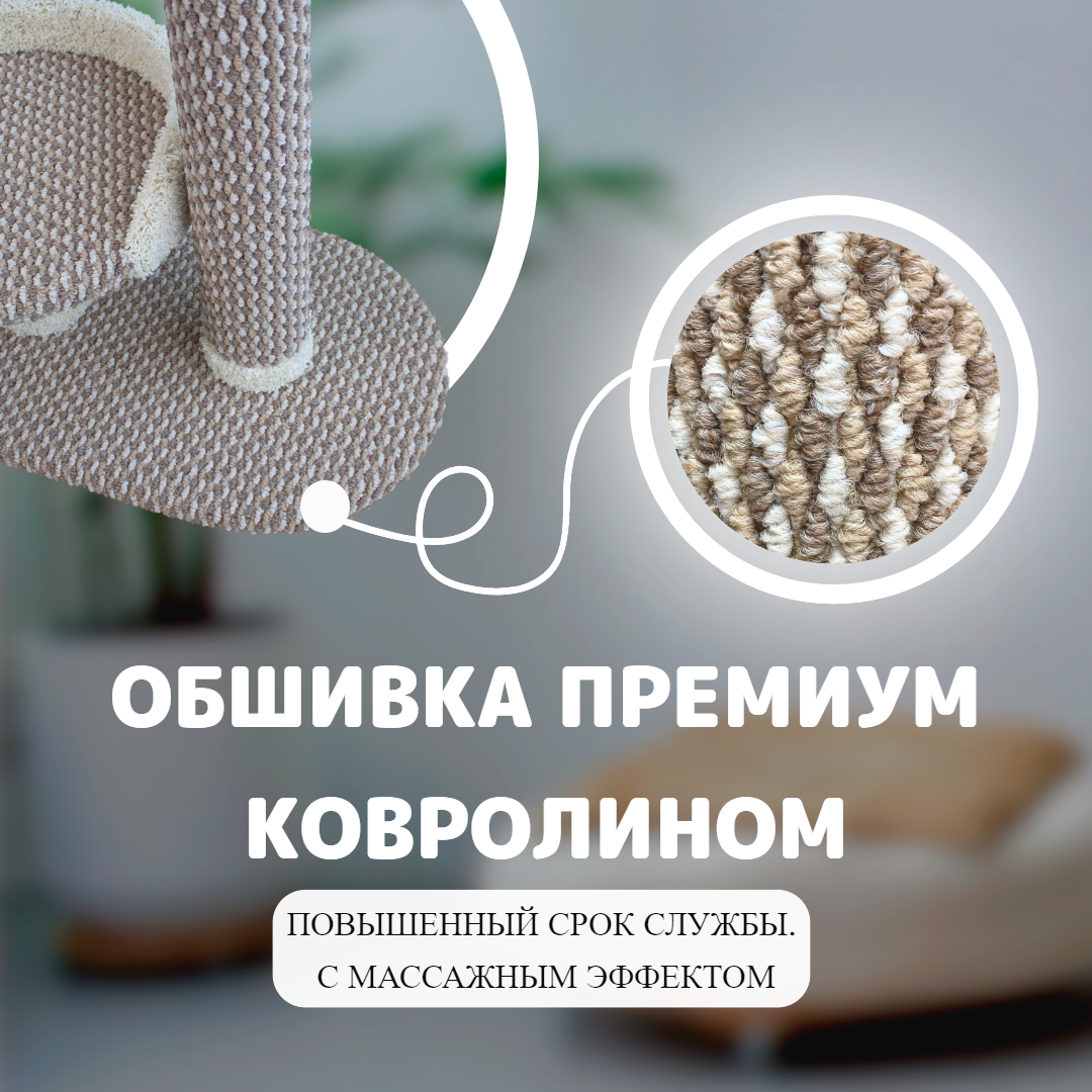 Когтеточка для кошки ковролиновая с лежанкой и игрушкой "Атлантида" информация: