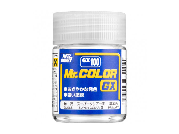 GX100 Mr.Hobby Краска целлюлозная на растворителе, Super Clear 3 Gloss, 18 мл. 605 ₽
