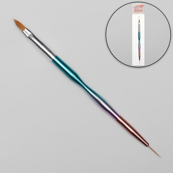 Кисть для наращивания и дизайна ногтей, двусторонняя, лепесток/точечная, 18,2 см, цвет радужный информация: