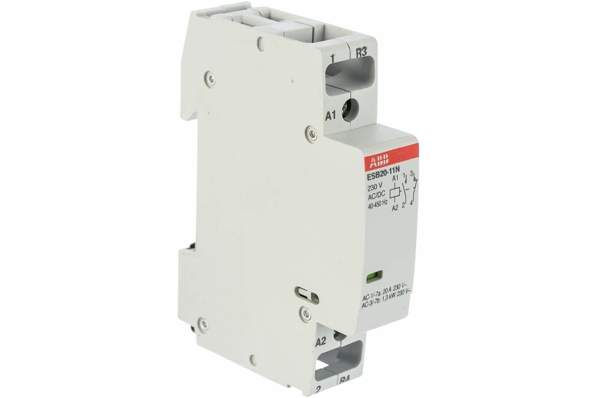 10 цен на Контактор ABB ESB20-11N-06, модульный, 20А, АС-1, 1НО+1НЗ, катушка, 230В, AC/DC 1SBE121111R0611