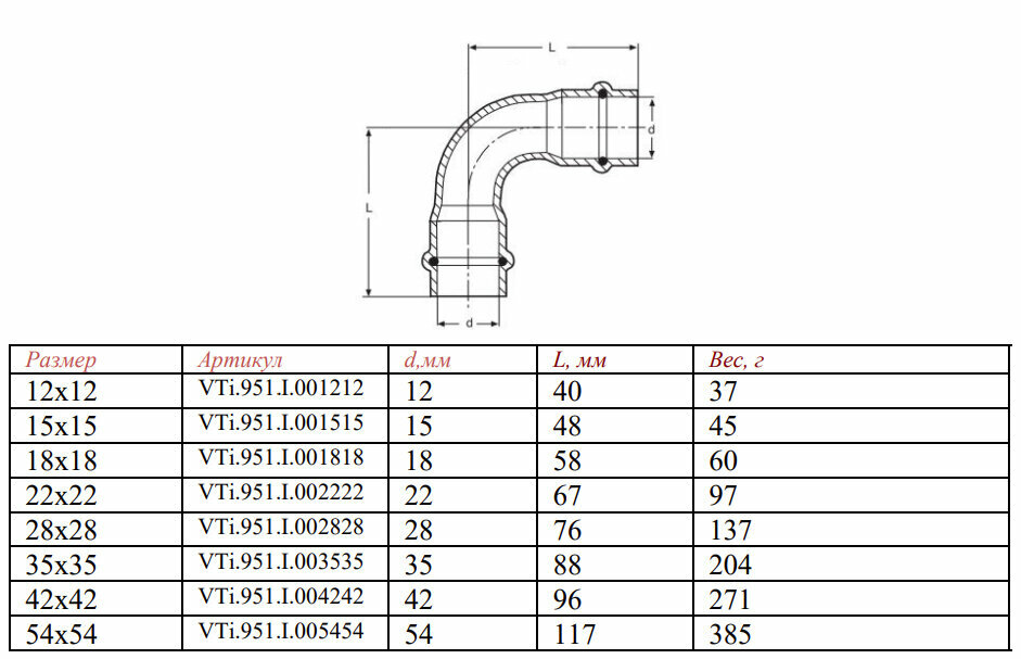Пресс угольник VALTEC 18х18, 90° нерж. сталь, VTi.951. I.001818 информация: