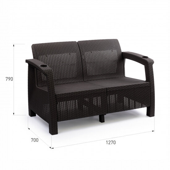 Диван садовый Бора 2-х местный 104 х 66 х 76 см, венге