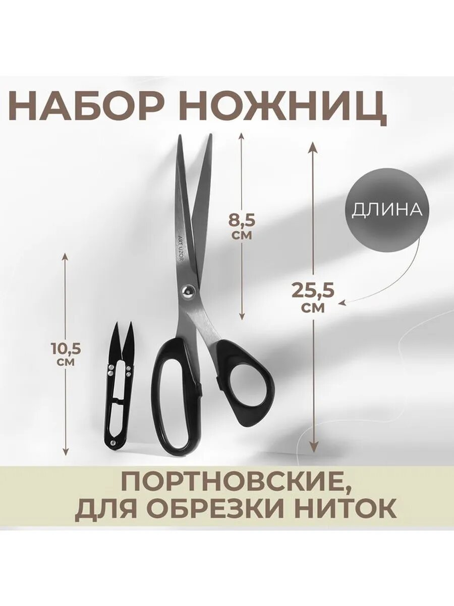 Набор ножниц: портновские 10", 25.5 см, для обрезки ниток 10 информация: