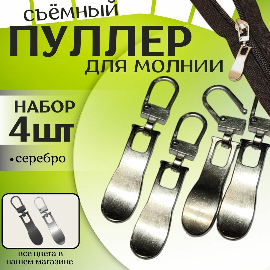 Серебристый пуллер для молнии , 4 штуки в упаковке 300 ₽
