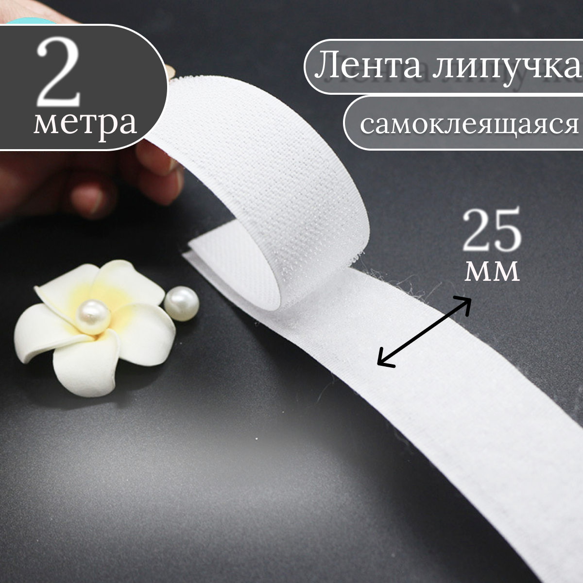 10 цен на Лента липучка самоклеящаяся, клейкая лента фиксатор 2 метра для ремонта в доме , в быту , для крепление ковриков в авто , цвет белый 25мм