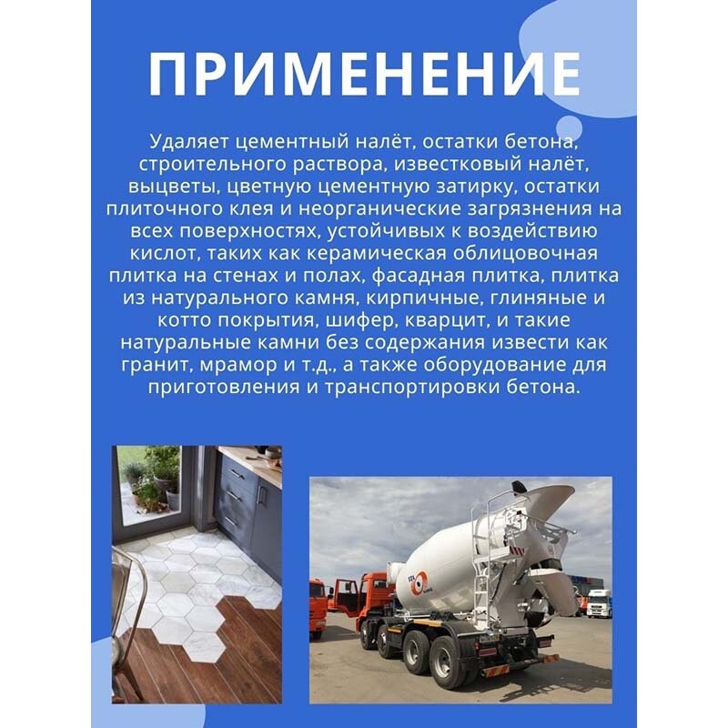 Отзывы на Средство очиститель для удаления цемента, бетона, цементной затирки с плитки швов, с керамогранита, известкового налета TELAKKA CEMENT 1л