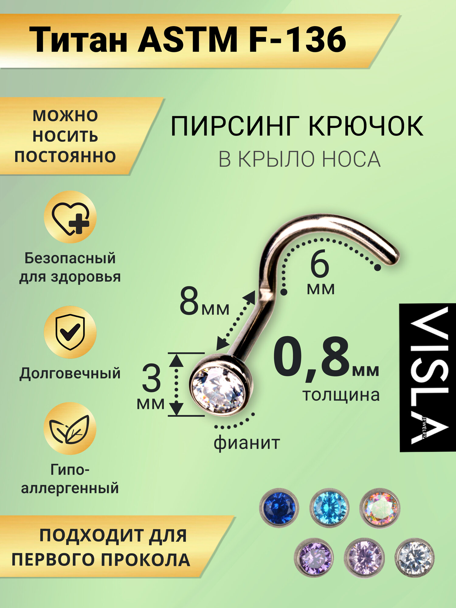 Отзывы на Пирсинг в нос Visla Jewelry, размер 8 мм, длина 0.8 см, длина стержня 8 мм, 1 шт., прозрачный кристалл