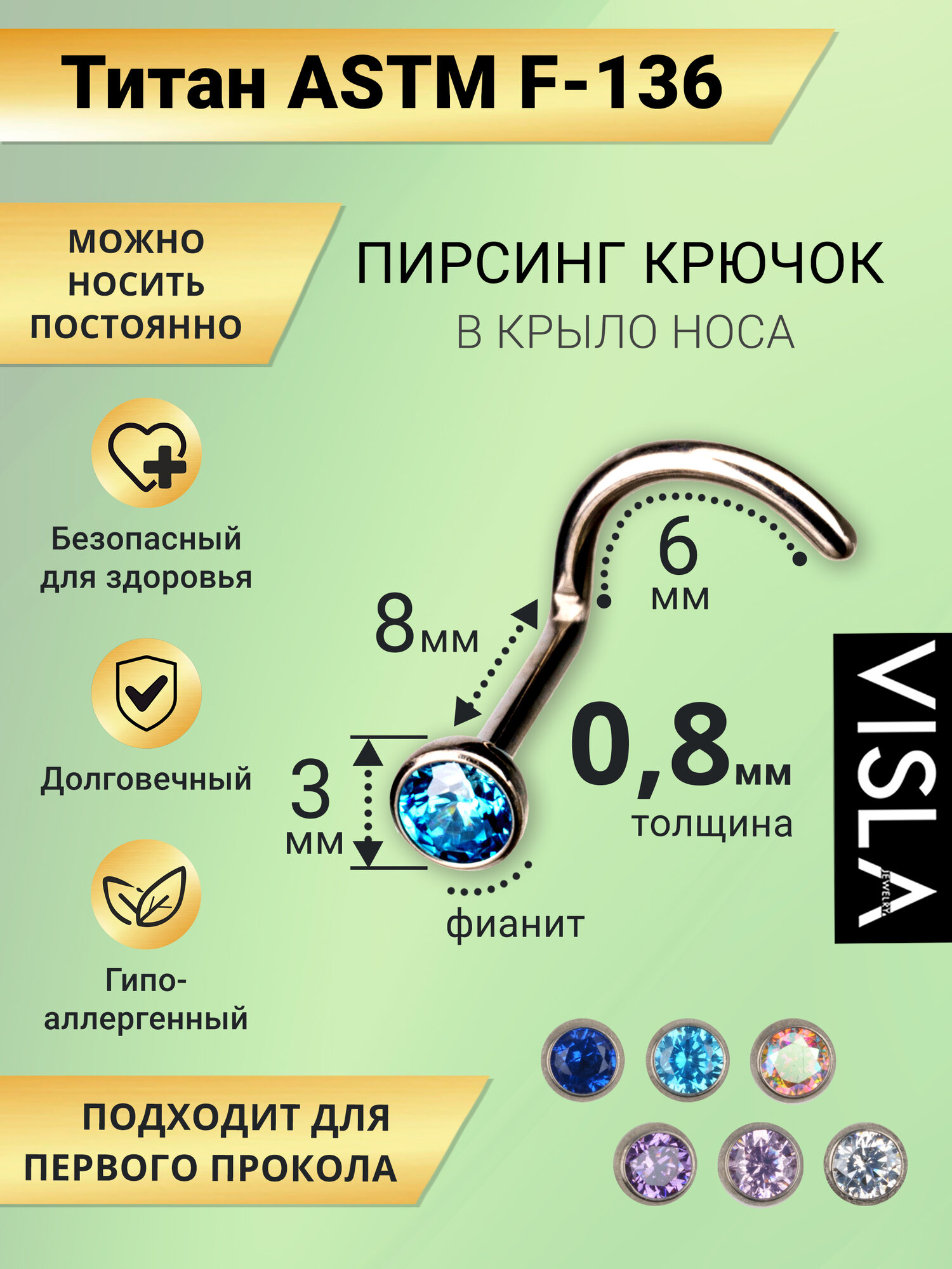 Отзывы на Пирсинг в нос Visla Jewelry, размер 8 мм, длина 0.8 см, длина стержня 8 мм, 1 шт., морская волна