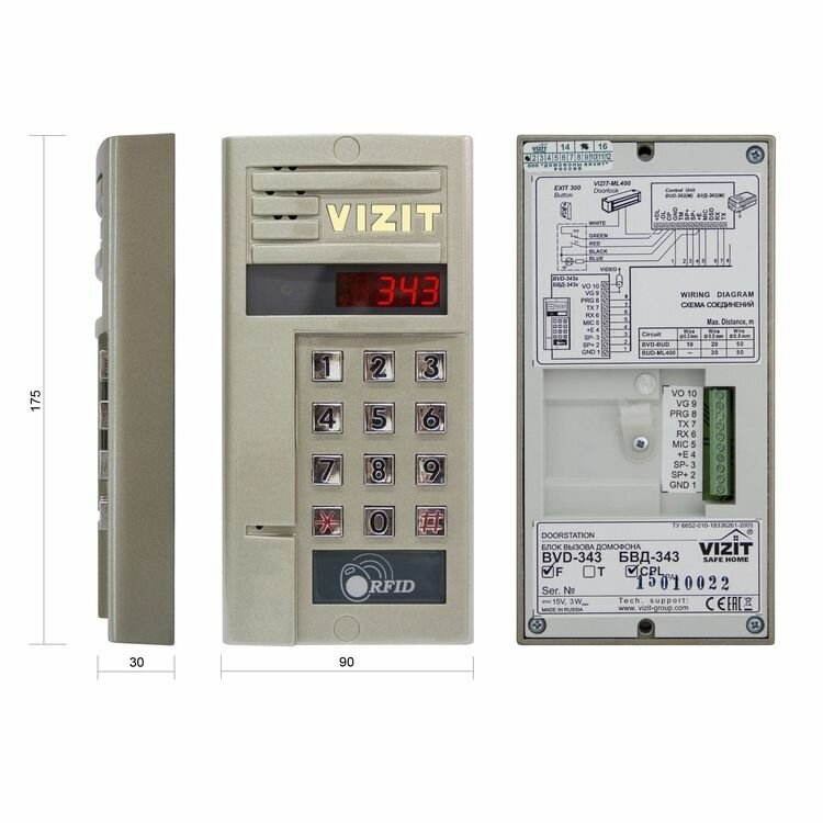 БВД-343FCPL блок вызова домофона Vizit информация: