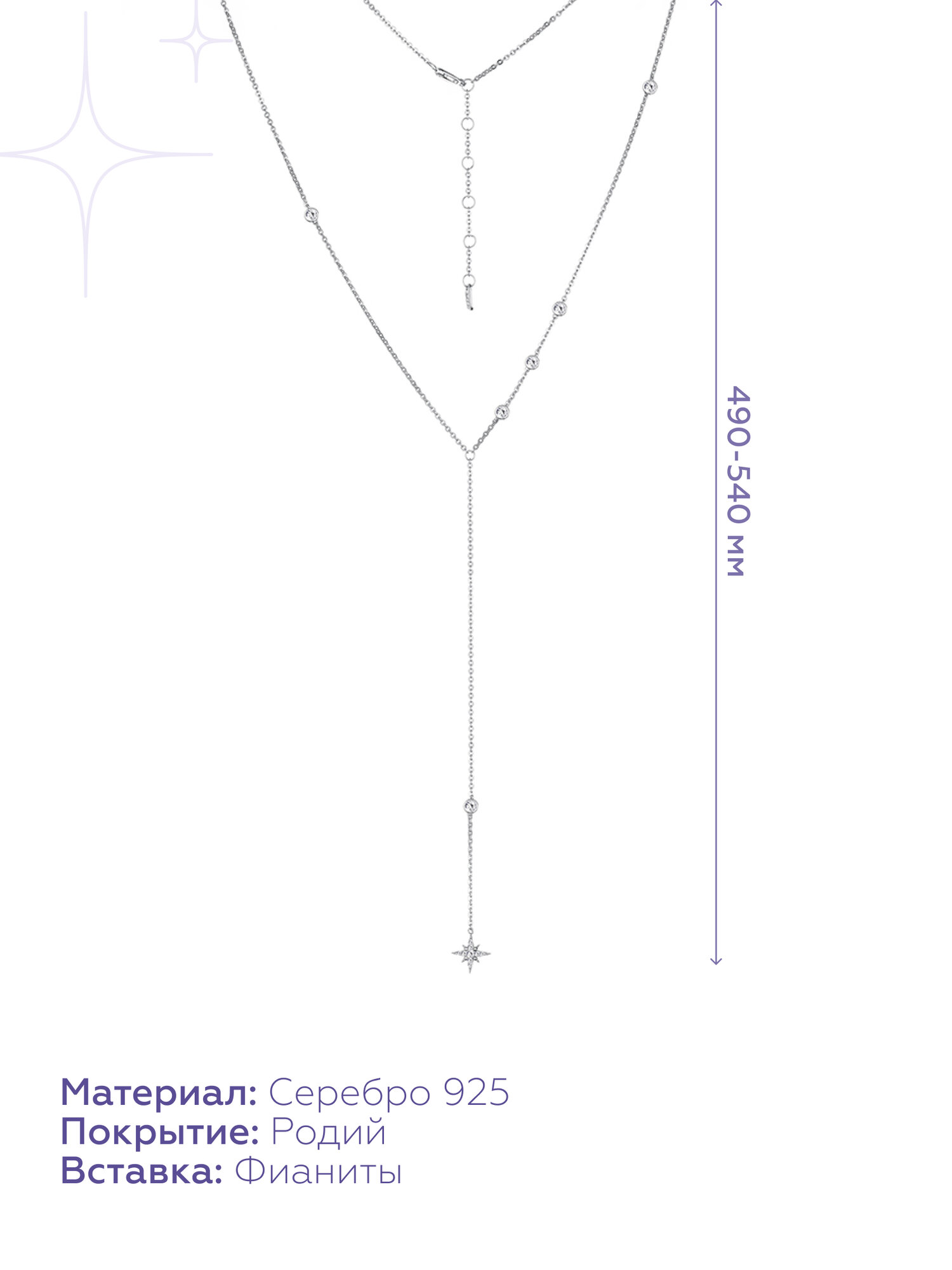 Отзывы на Колье MIESTILO, серебро, 925 проба, родирование, фианит, длина 54 см., серебристый