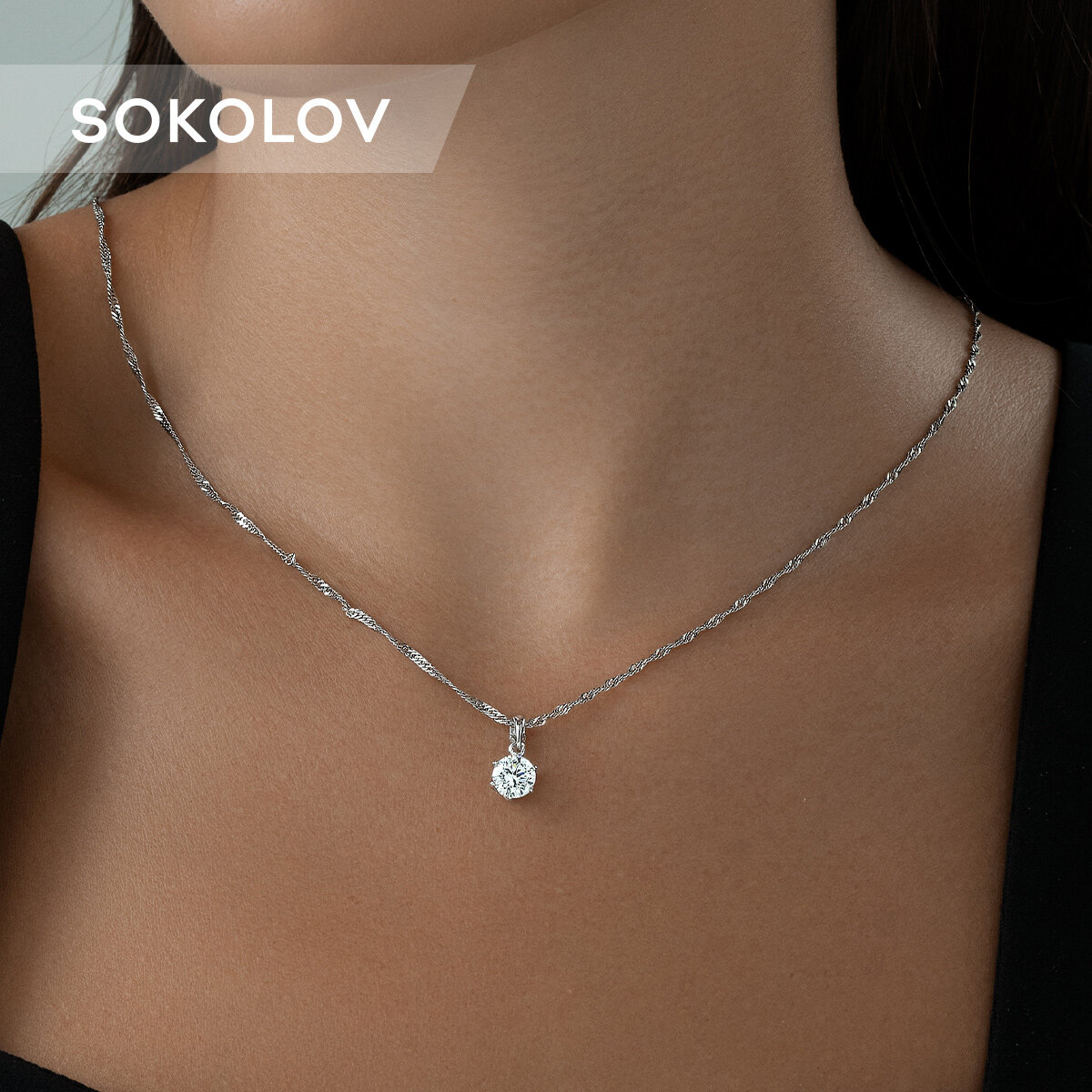 Отзывы на Подвеска SOKOLOV, серебро, 925 проба, родирование, фианит, размер 1.5 см., бесцветный