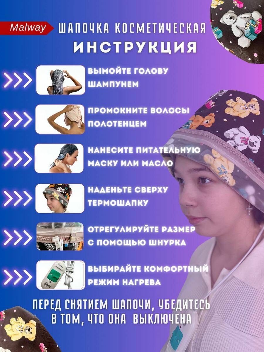 Термошапка электрическая Malway "Красивый сон", для масок, экокожа, информация: