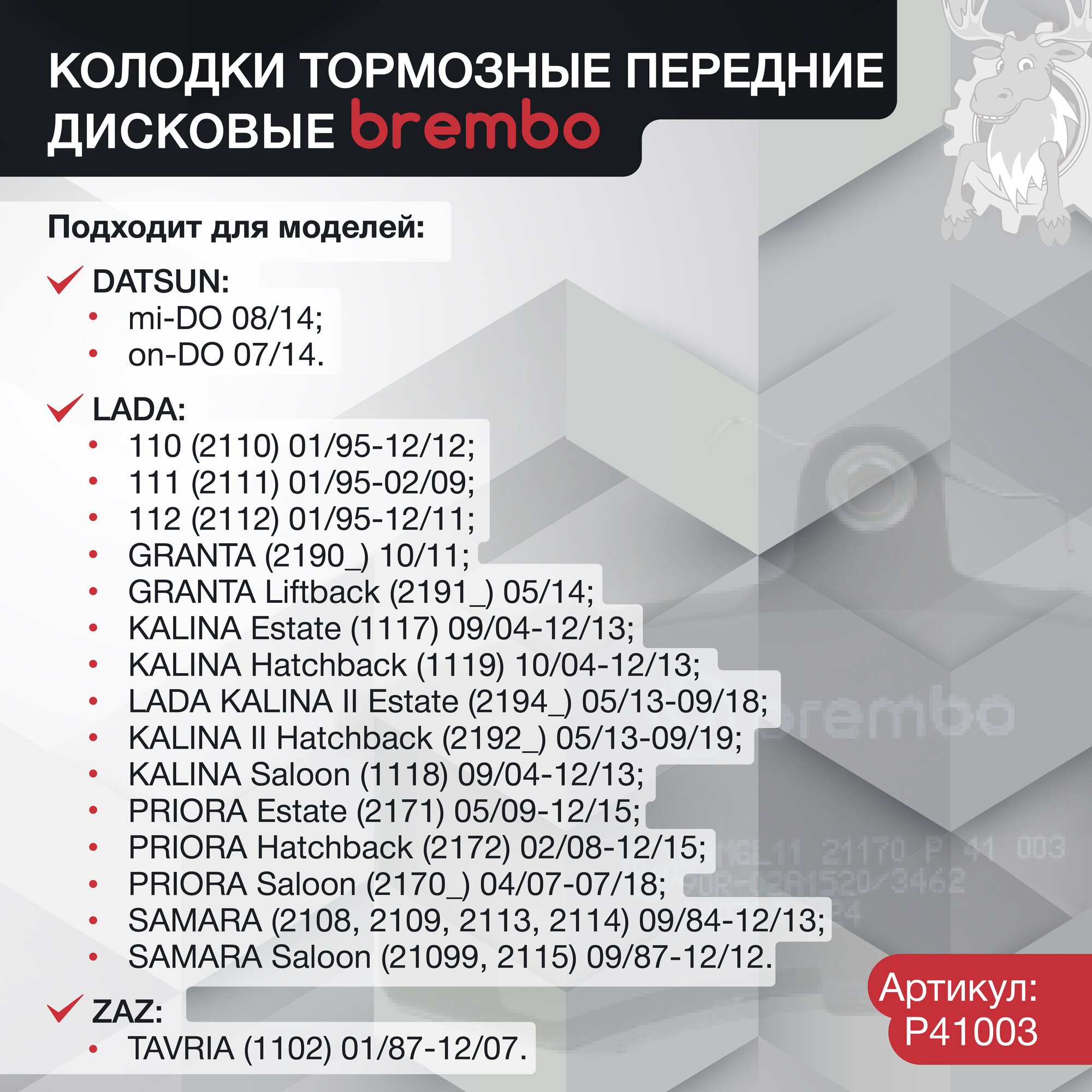Колодки тормозные дисковые передние Brembo (P41003) информация: