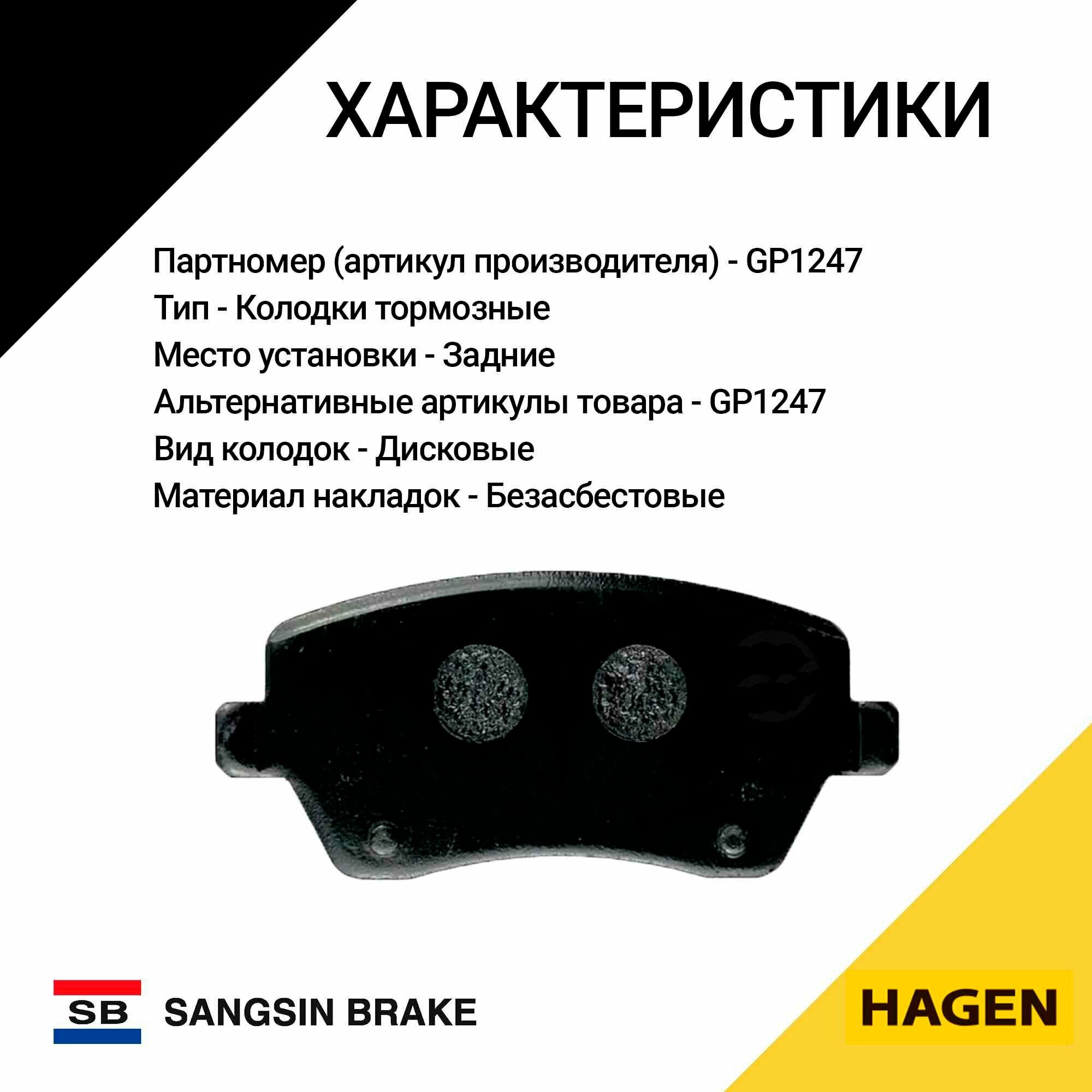 Sangsin Brake HAGEN GP1247 Колодки тормозные задние информация: