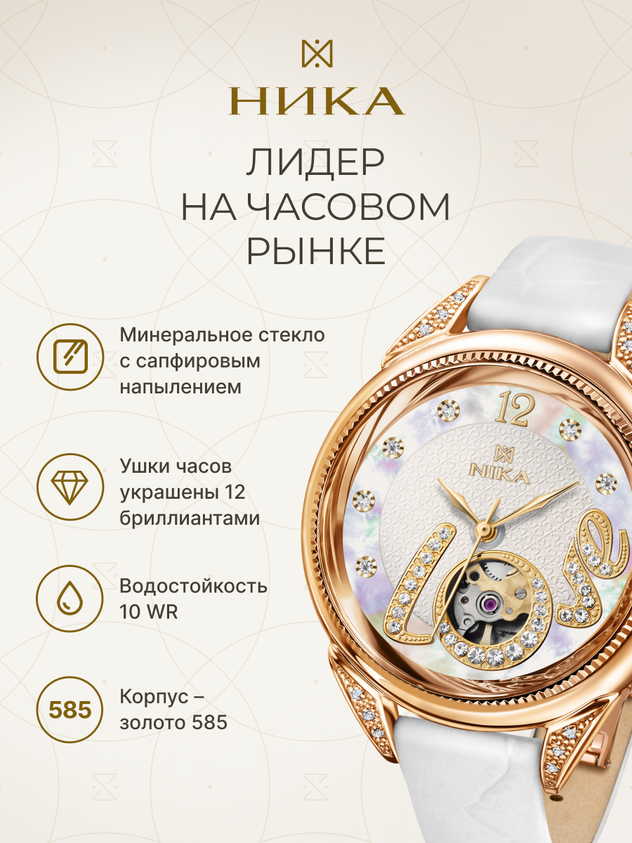 Наручные часы НИКА, золото, бриллиант, белый информация: