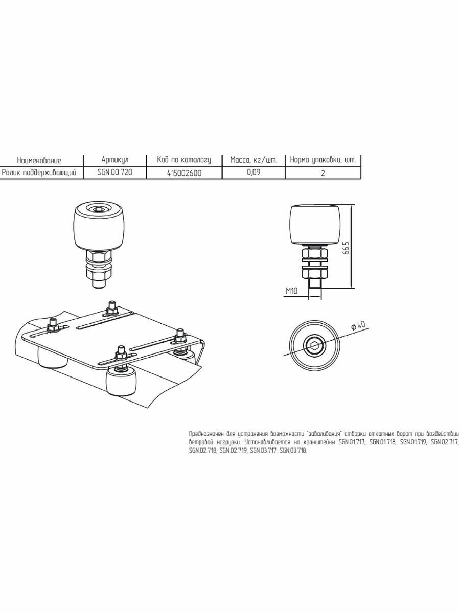 SGN.00.720 / Поддерживающие ролики для откатных ворот - 2шт информация: