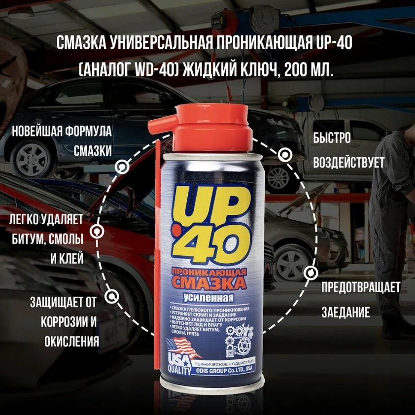 Универсальная проникающая смазка (жидкий ключ) UP 40 200 мл информация: