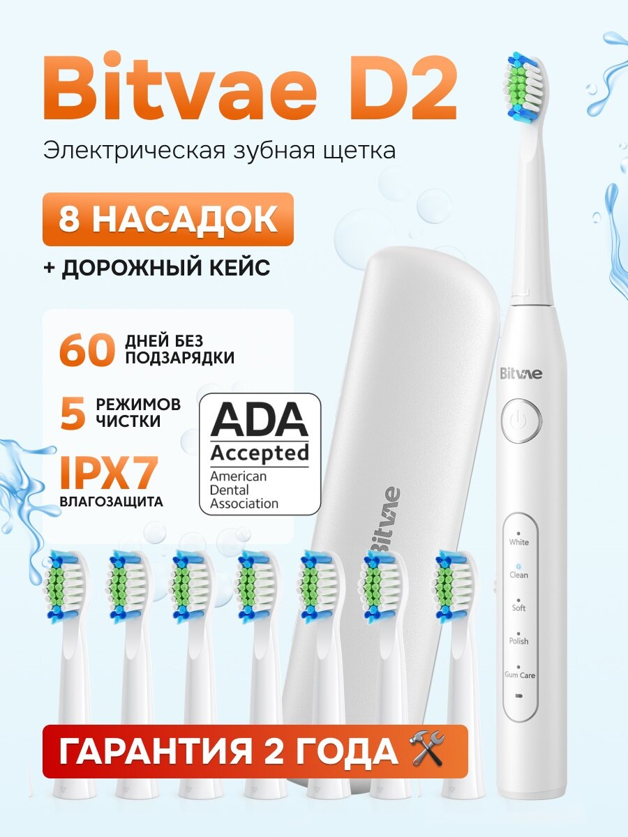Отзывы на Электрическая зубная щетка Bitvae D2 Toothbrush + Case+8 Heads (D2 + Case + 8 Heads) , GLOBAL, White