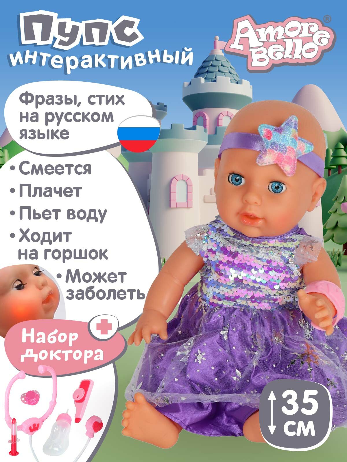 Интерактивная Кукла-Пупс с аксессуарами, плачет/смеется, говорит фразы/звуки/стихи, аксессуары врача, JB0211586 2 300 ₽