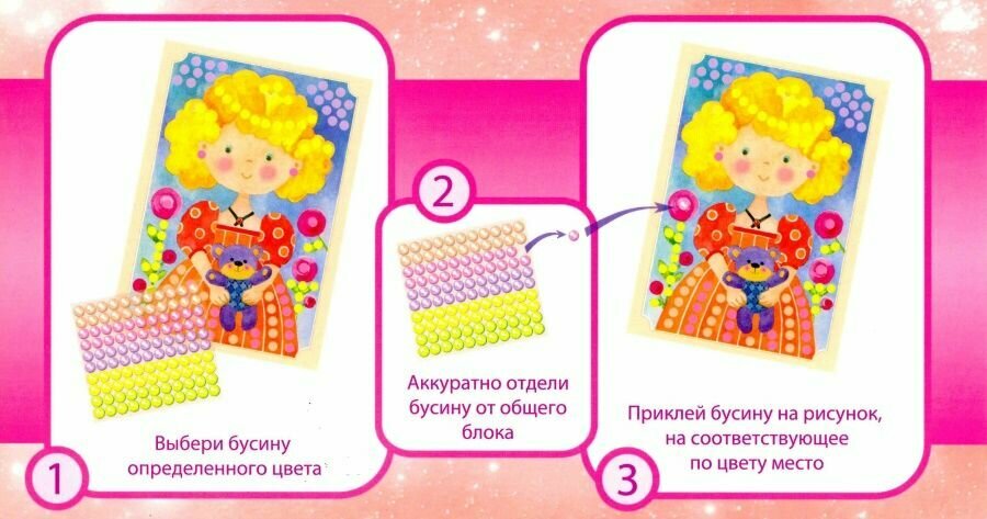 Отзывы на Аппликация с самоклеющимися бусинами "Принцесса Анфиса", набор для детского творчества, подарок для девочки, 5 цветов, 120 элементов