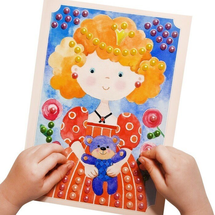10 цен на Аппликация с самоклеющимися бусинами "Принцесса Анфиса", набор для детского творчества, подарок для девочки, 5 цветов, 120 элементов