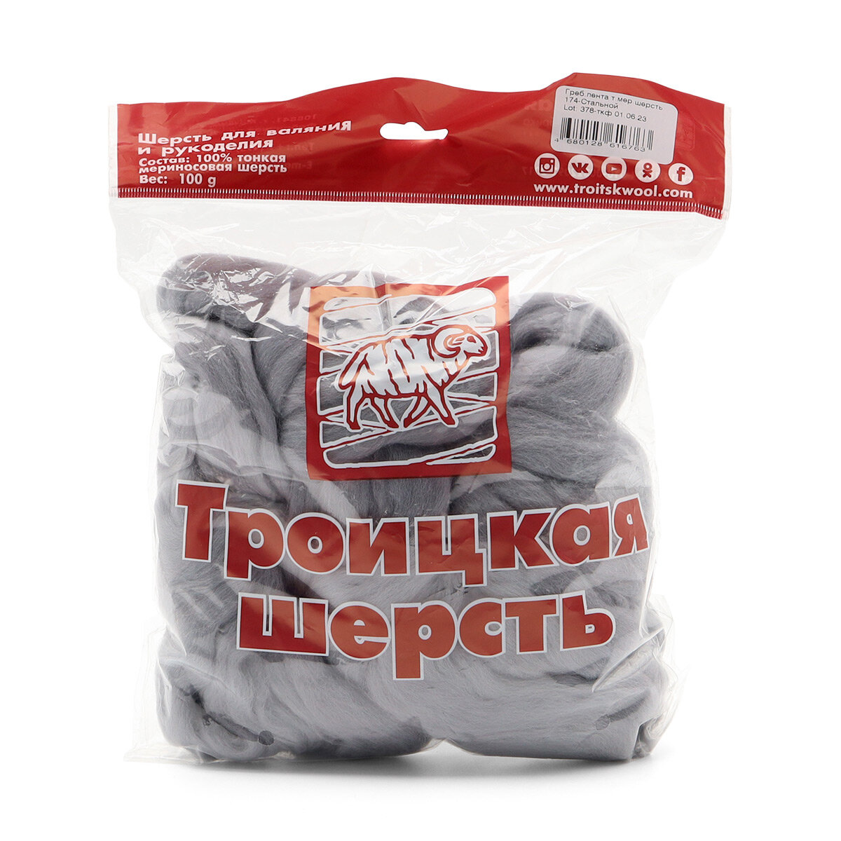 Шерсть для валяния мериносовая тонкая 100%, Пряжа из Троицка, 100 г (174 стальной) информация:
