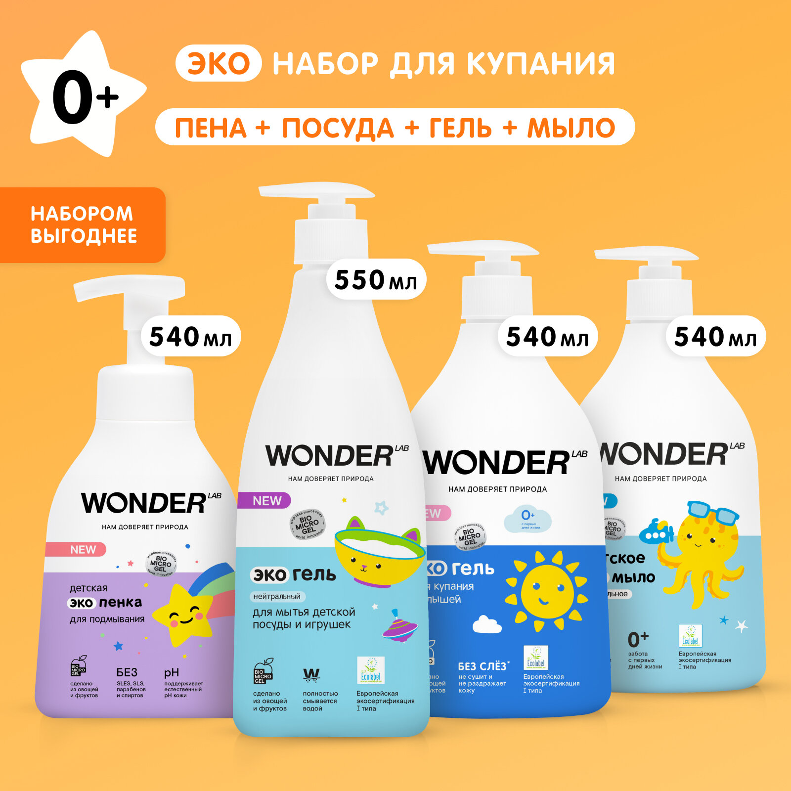 Детский набор для купания WONDER LAB: шампунь, гель для душа, пена для ванны, жидкое мыло для рук и умывания, 3+ 999 ₽