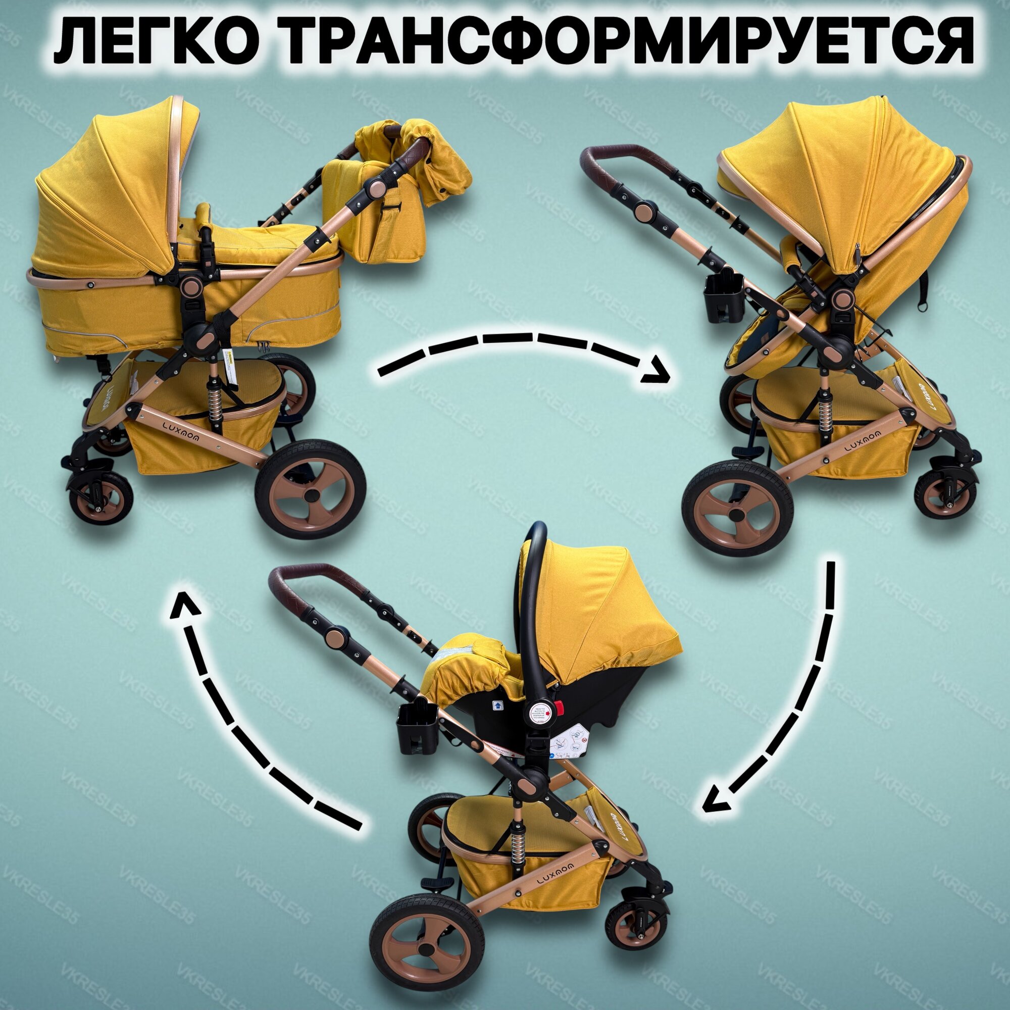 Отзывы на Детская коляска трансформер 3в1 Luxmom 518 с перекидной ручкой, цвет желтый