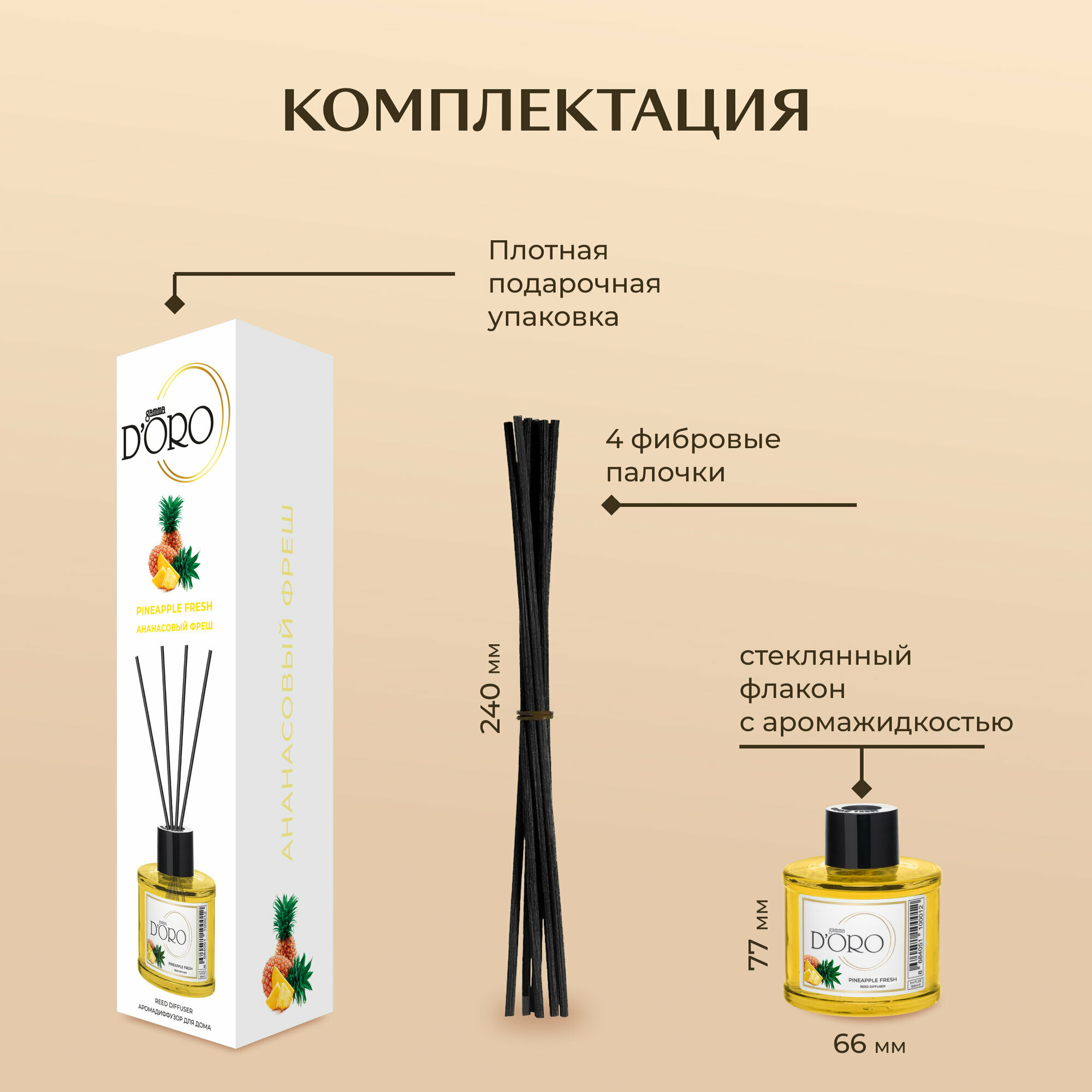 Ароматический диффузор для дома с палочками GAMMA D’ORO Ананасовый фреш 100 мл информация: