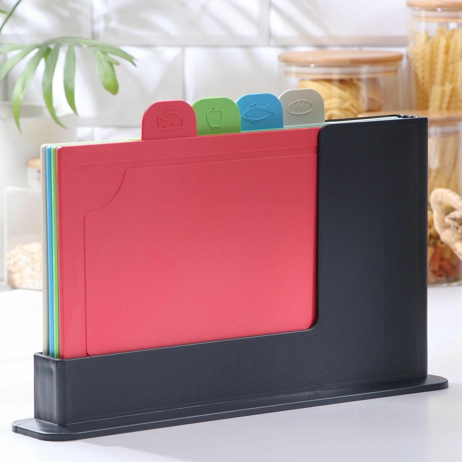 10 цен на Набор досок разделочных с маркерами на подставке, 4 шт