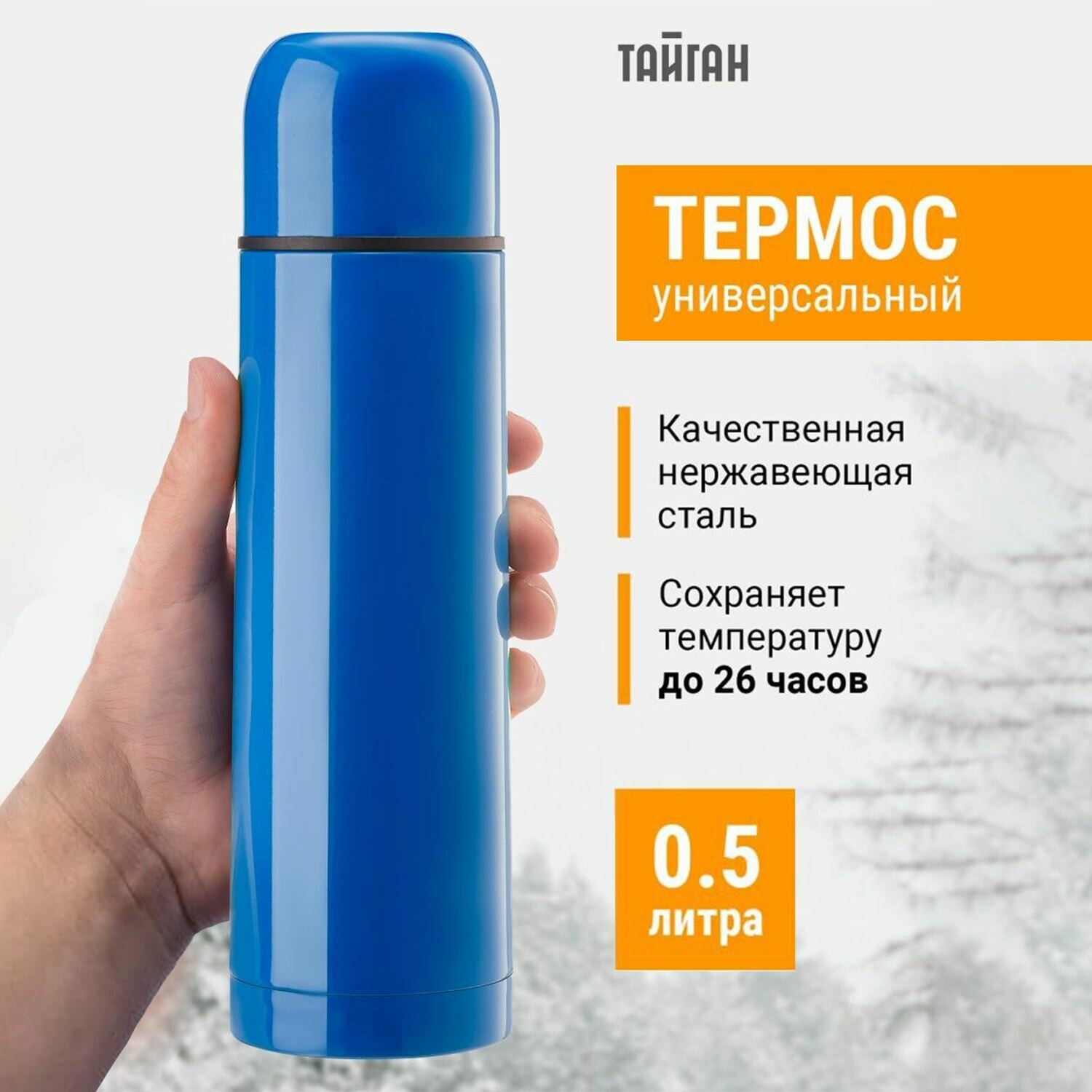 Термос Тайган, 0.5л, туристическая походная посуда и спорт инвентарь для чая кофе супа из нержавеющей стали (нержавейка), подарок любимому мужу парню для рыбалки, природы и отдыха информация: