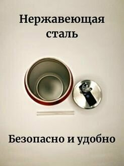 Термокружка для кофе и чая, Термокружка с трубочкой, Термокружка автомобильная, Термос детский с трубочкой, Термокружка детская, Термос для чая, банка Кока-Кола, красная 300 мл. 692 ₽