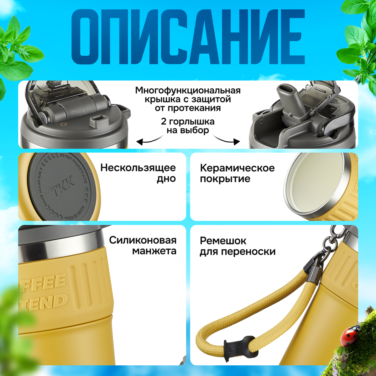 Отзывы на Термокружка для чая и кофе TKK Premium из нержавеющей стали, 630 мл, жёлтый