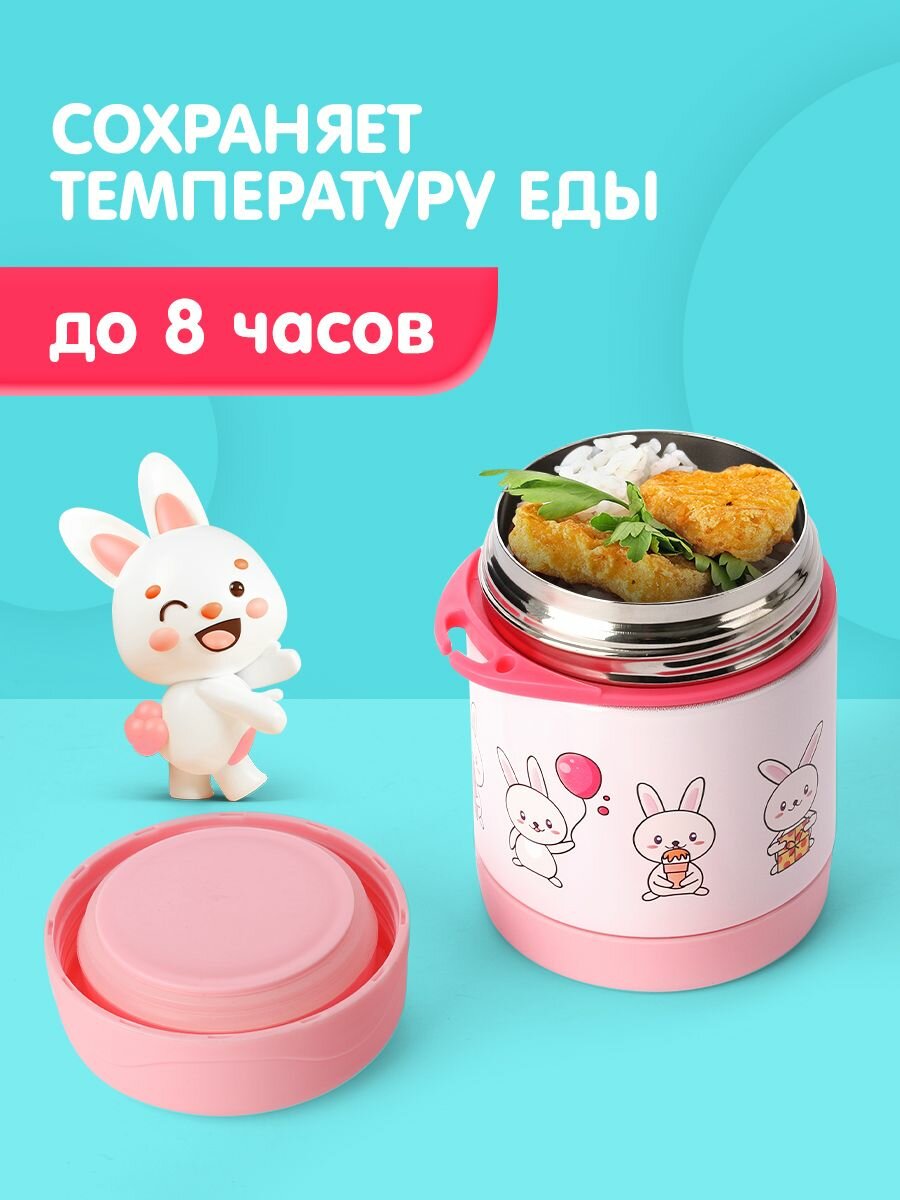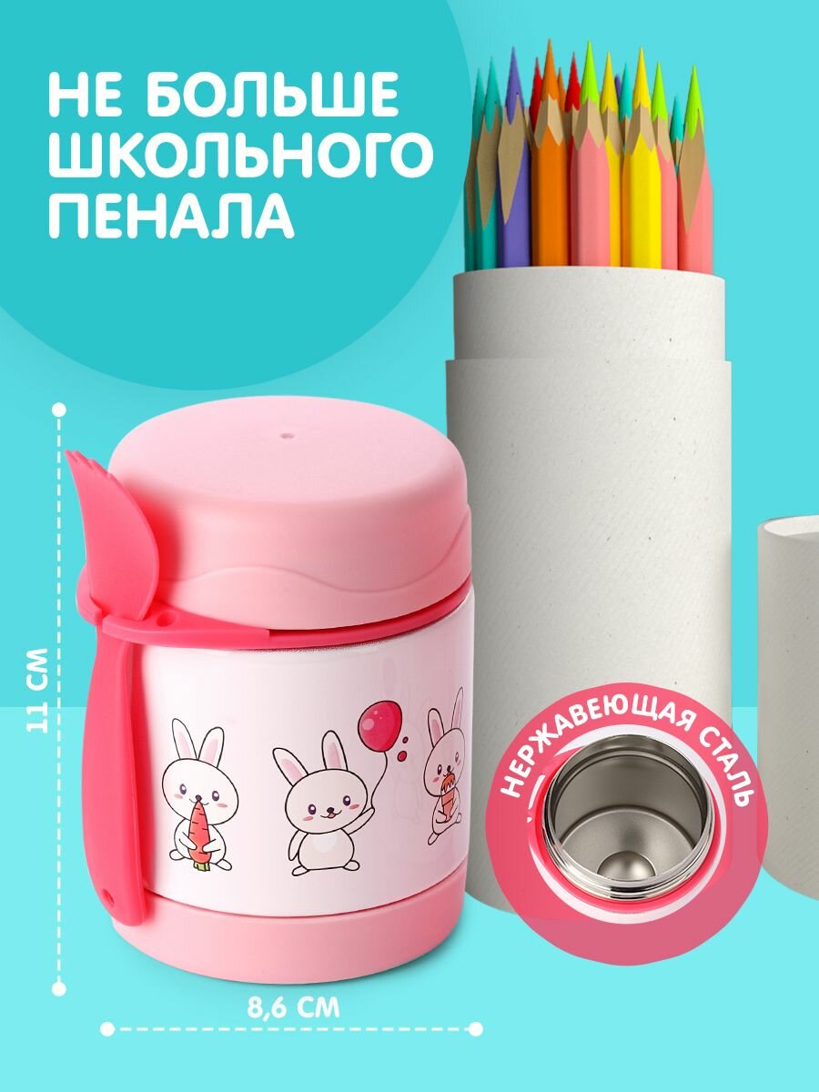 Термос вакуумный для еды с широким горлом и вилкой Play Okay, ланч-бокс, контейнер детский в школу, кружка для супа из нержавеющей стали, розовый 300 мл информация: