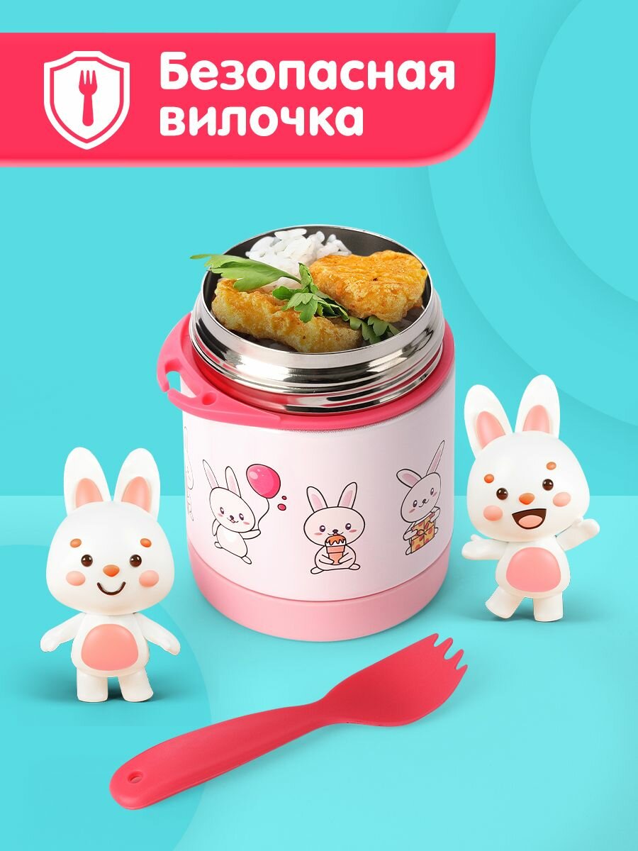 Отзывы на Термос вакуумный для еды с широким горлом и вилкой Play Okay, ланч-бокс, контейнер детский в школу, кружка для супа из нержавеющей стали, розовый 300 мл