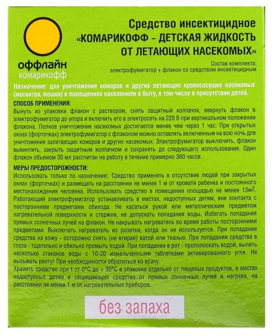 Комплект Комарофф оффлайн бережно 45 ночей, без запаха, жидкость 30 мл OF01060301 информация:
