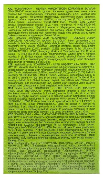 | Состав | натуральные пиретрины (0,025%), трансфлутрин(0,1%), праллетрин (0,5%) |