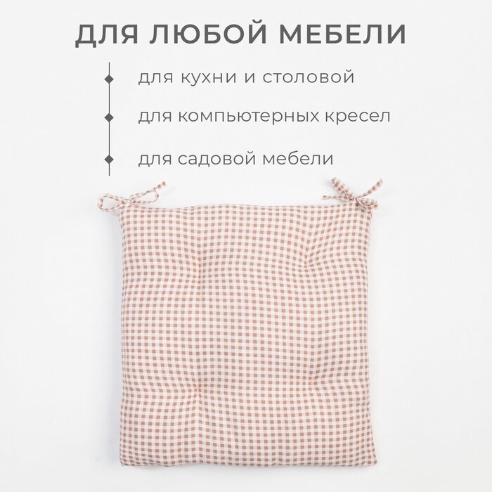 10 цен на Подушка на стул Этель "Клеточка" 40х40 см, цв. бежевый, 100% полиэстер