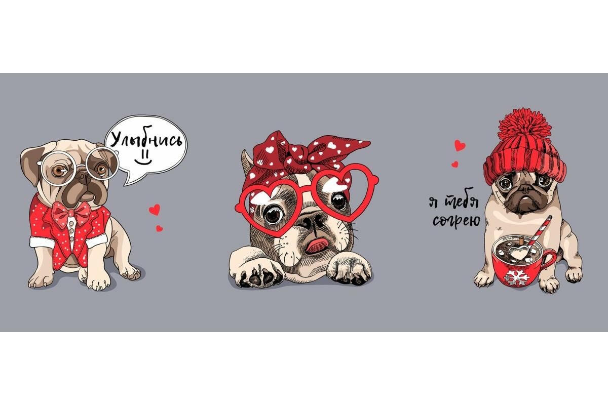 Набор кухонных полотенец "Мопсы", хлопок 100%, рогожка, 50 x 60 см, 3шт информация: